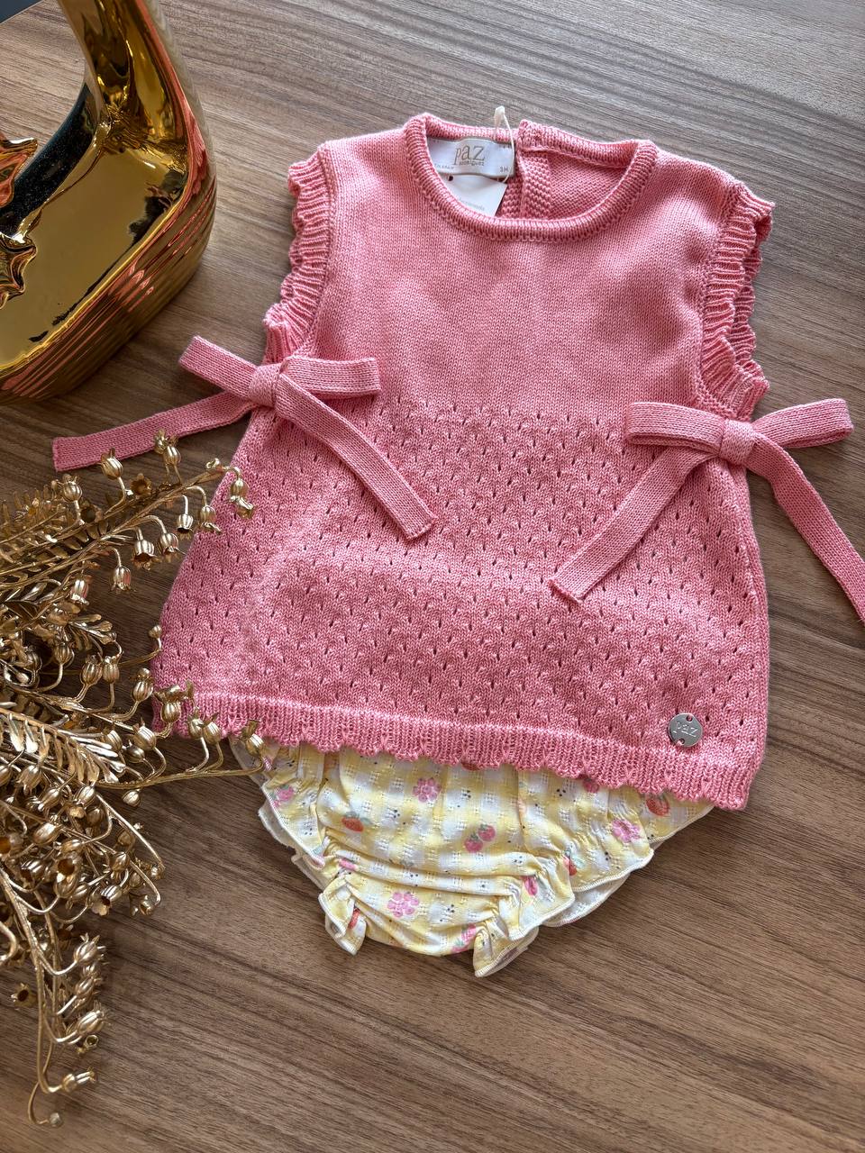 Delicato pagliaccetto in filo per neonata, perfetto per le giornate estive. Il design di Paz Rodriguez combina eleganza e comfort, con tessuto leggero e traspirante ideale per mantenere la piccola fresca e a suo agio. I dettagli raffinati e la qualità costruttiva garantiscono un capo che accompagna i momenti speciali della stagione calda. Una scelta sofisticata per chi desidera abbigliamento neonato che unisce stile e praticità .