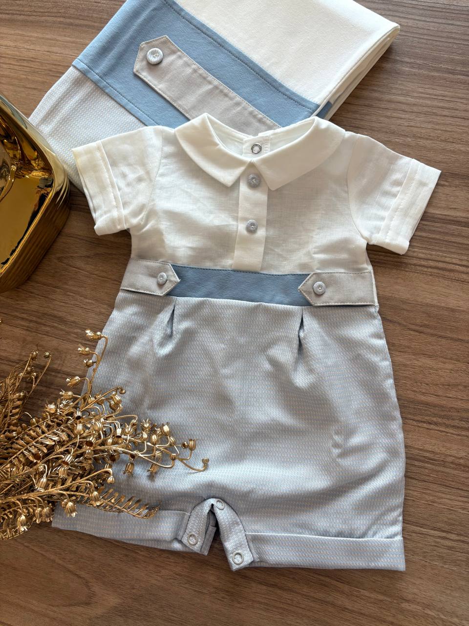 Il Pagliaccetto Teto e Tatta in panna e polvere è progettato per neonati, offrendo comfort e praticità. Realizzato con materiali morbidi, garantisce una pelle delicata protetta. La sua vestibilità ottimale facilita i movimenti del bambino, assicurando libertà e comodità durante la crescita.