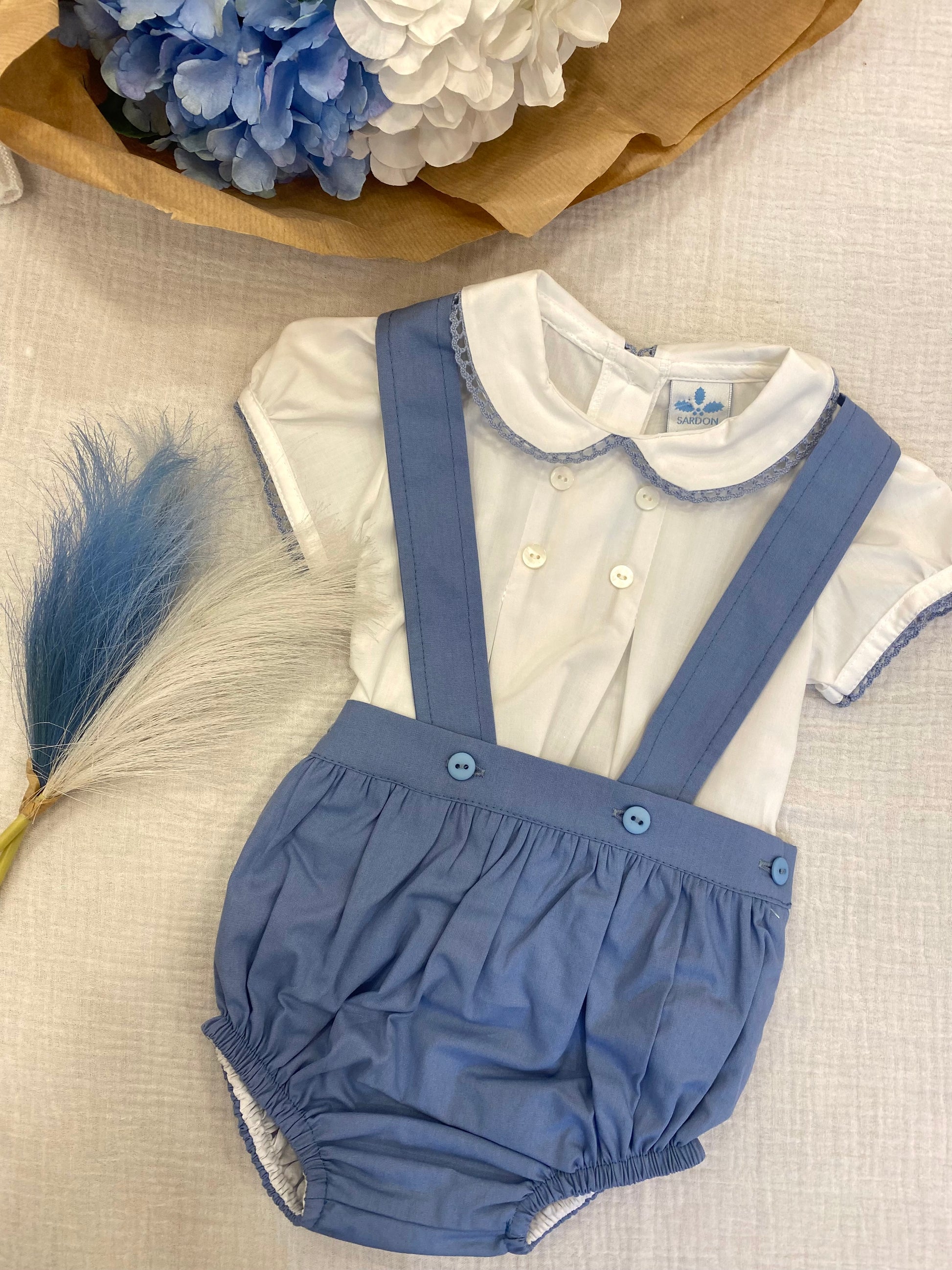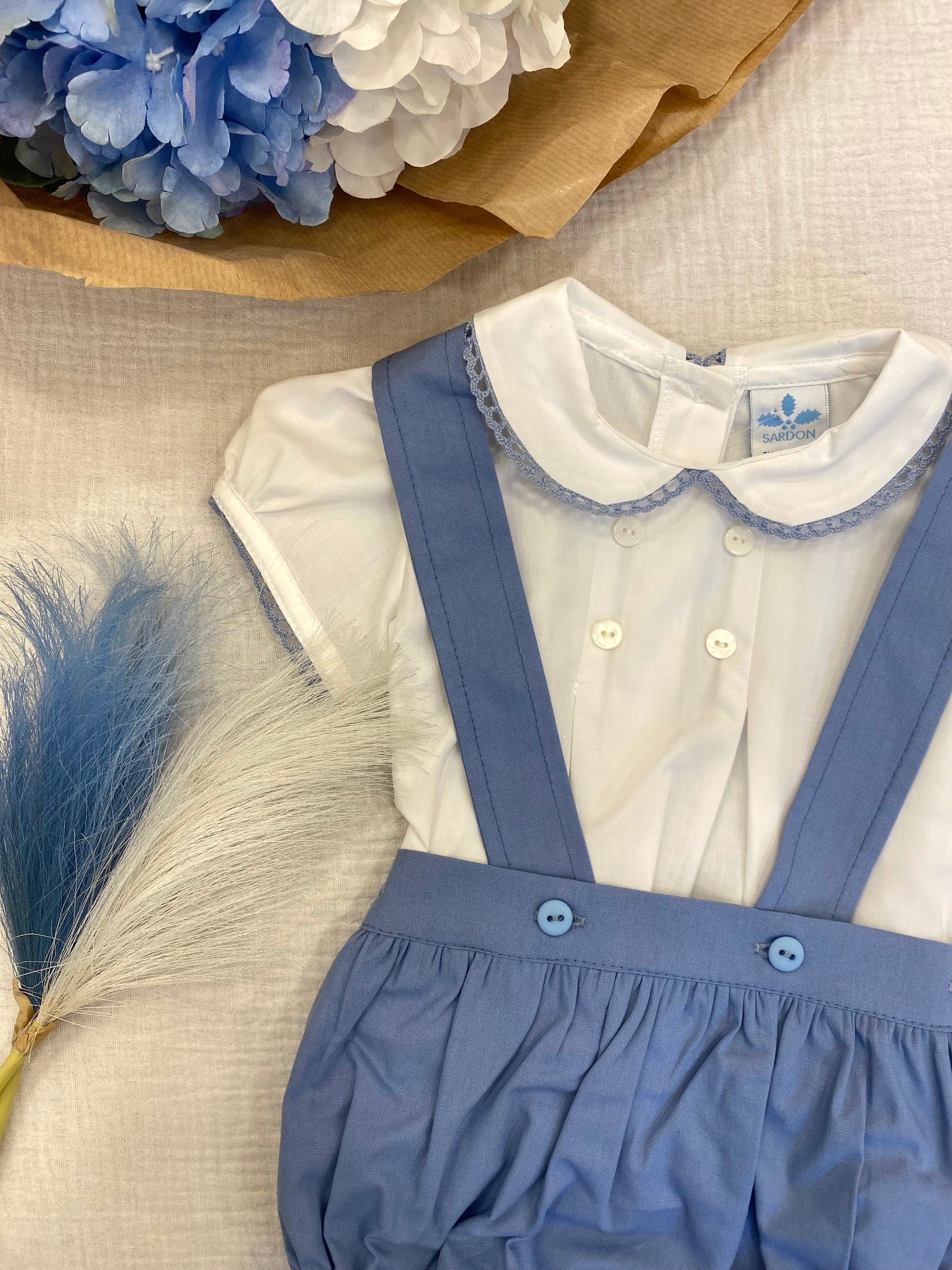 Salopette Sardon con camicina e pagliaccetto blu con bretelleÂ