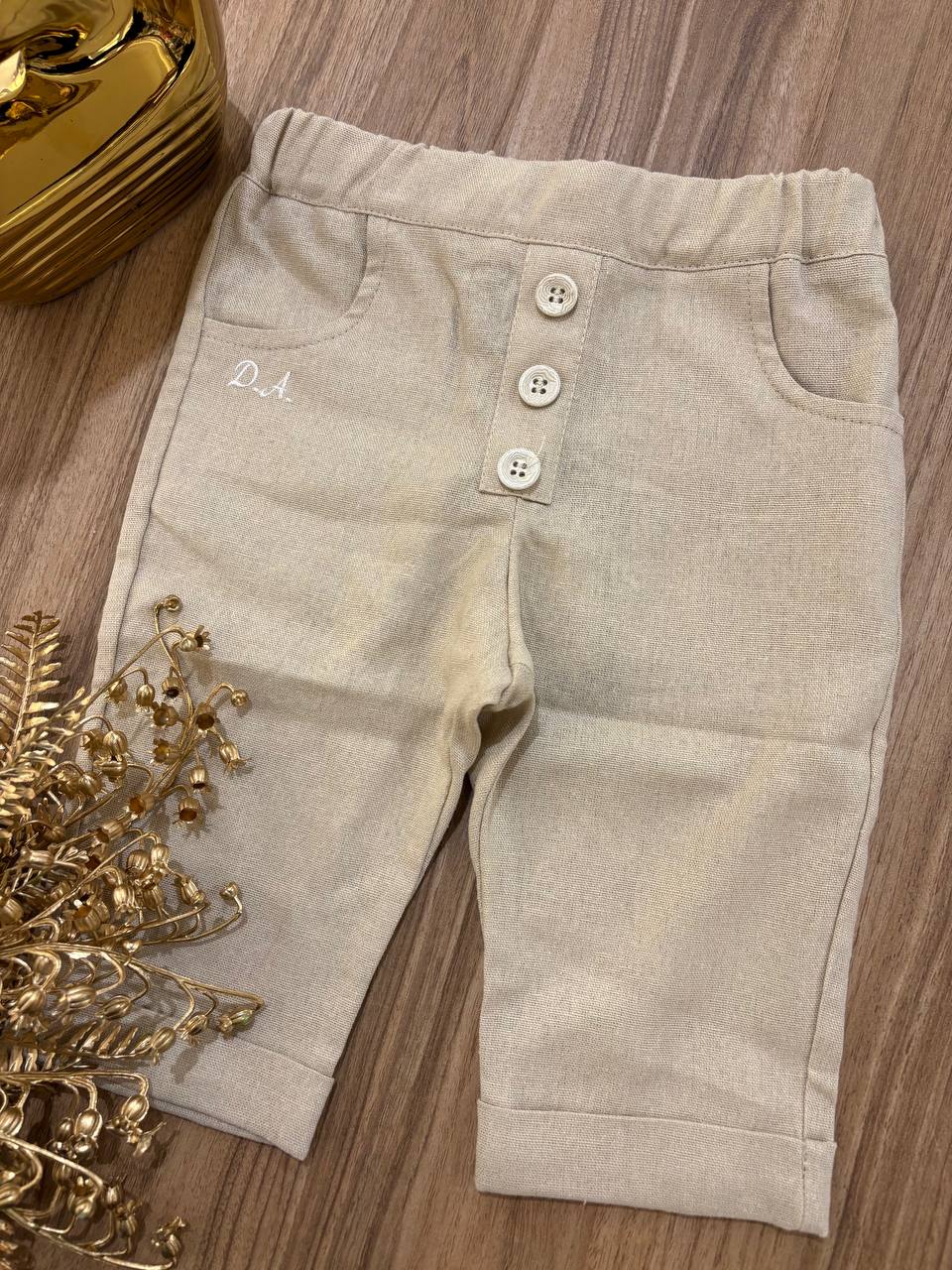 Il pantalone in lino beige Daniele Alessandrini per bambino offre un'ottima traspirabilità grazie alla naturale composizione del lino. Questo tessuto leggero è ideale per le temperature più elevate, garantendo comfort durante le attività quotidiane. La tonalità beige si presta a diversi abbinamenti nel guardaroba infantile.