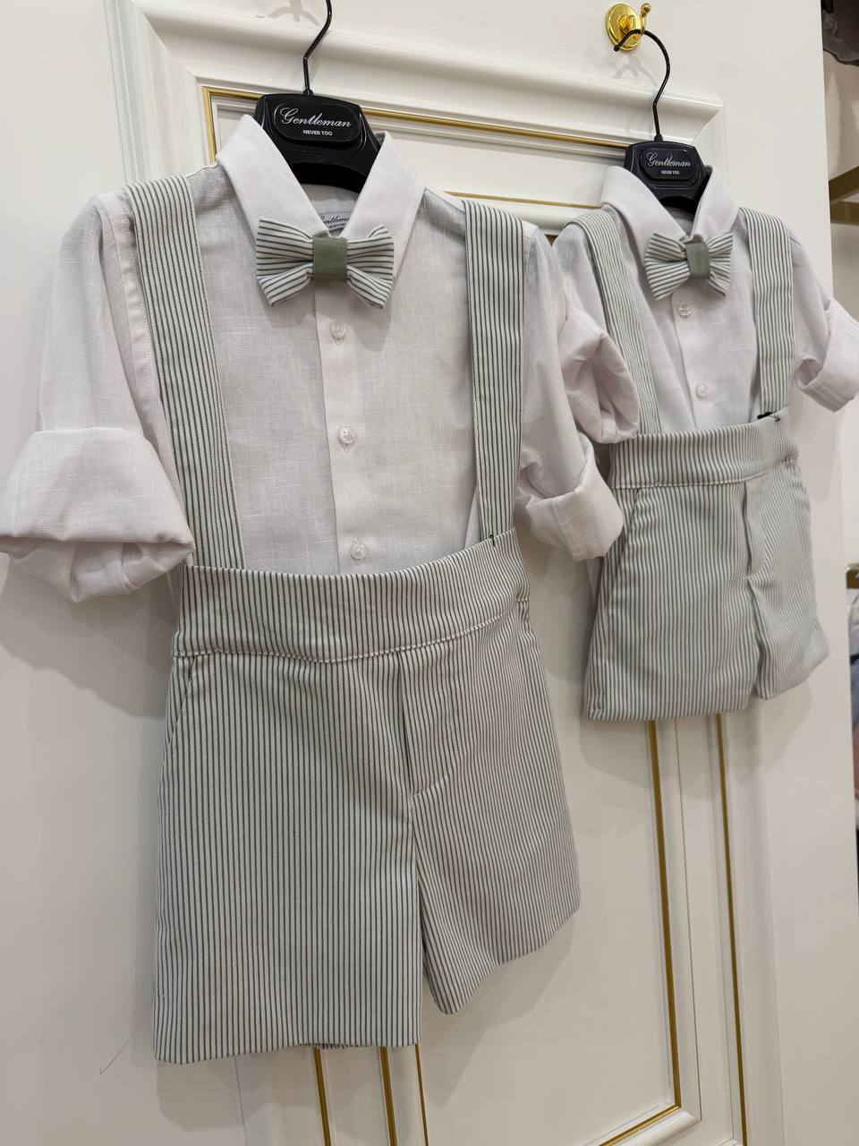 SALOPETTE VERDE GENTLEMAN - CERIMONIA BAMBINO Eleganza senza compromessi per i momenti speciali del tuo bambino COMPRENDE SALOPETTE,CAMICIA E PAPILLON . Questa salopette in verde raffinato combina uno stile gentleman sofisticato con il comfort che i piccoli meritano. Perfetta per cerimonie, battesimi e occasioni importanti, il design classico con dettagli ricercati garantisce un look distinto e memorabile. Tessuto di qualità che mantiene la forma e resiste al gioco, permettendo al tuo bambino di muoversi liberamente anche nei giorni più importanti. Un capo che cresce con lui e rimane un ricordo indimenticabile.