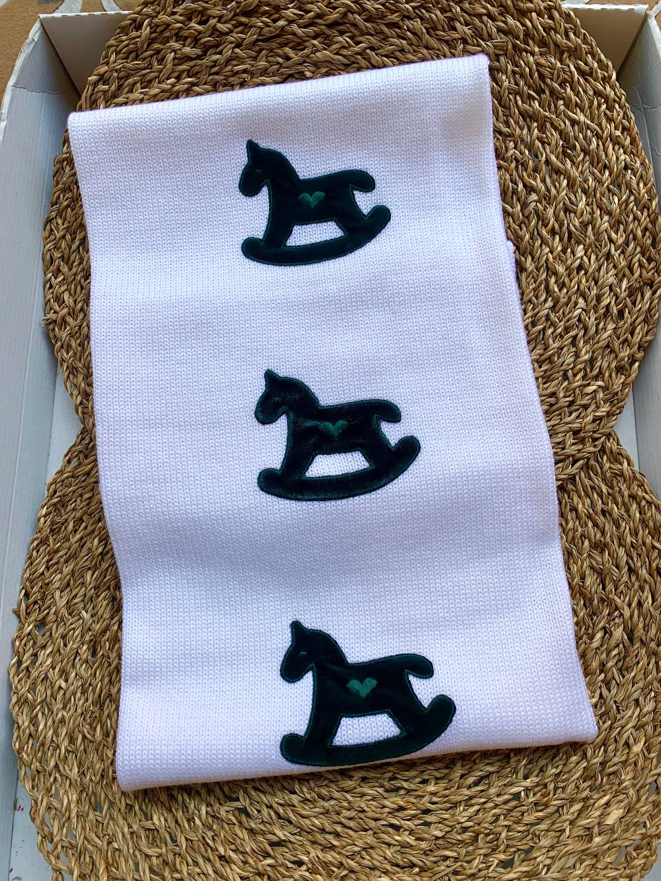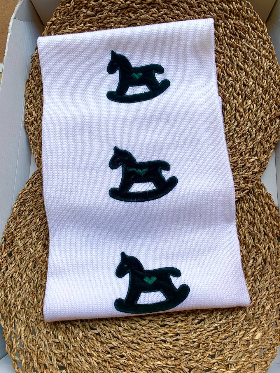 Lo Scialle CAVALLINO A DONDOLO BABY LORD è perfetto per coccolare il tuo neonato il decoro a cavallino verde lo rendono unico nel suo genere. Avvolgi il tuo bambino con uno stile elegante e confortevole grazie a questo scialle.