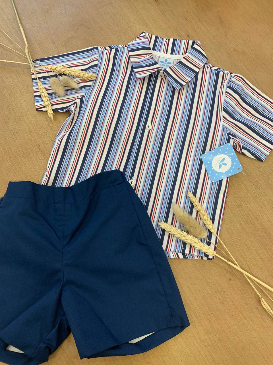 Vestito per bambini Sardon completo di camicetta e pantaloni. Realizzato con tessuti di alta qualità , garantendo comfort e durata. Abbigliamento perfetto per feste e occasioni speciali, ma anche per un look casual e trendy. Scegli questo completo per far risplendere il tuo piccolo in ogni occasione!