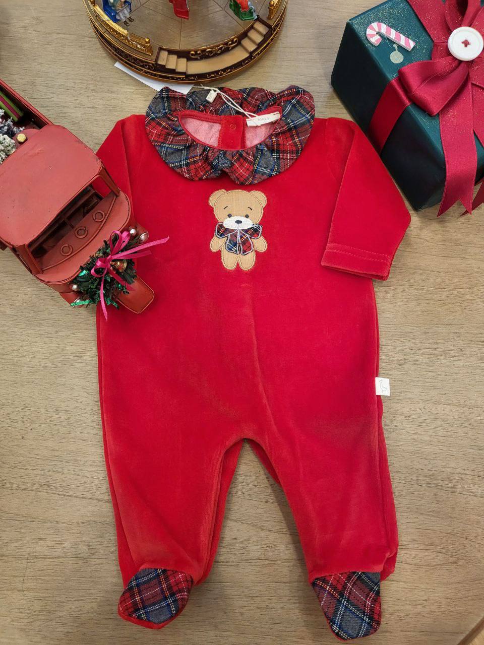 Questa tutina neonata natalizia è realizzata in ciniglia e presenta un grazioso motivo a orsetto. Con questo confortevole capo di abbigliamento il tuo bambino sarà al caldo e al tempo stesso alla moda per le feste di Natale. Ideale come regalo per i neo-genitori.