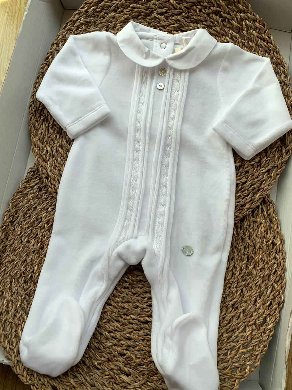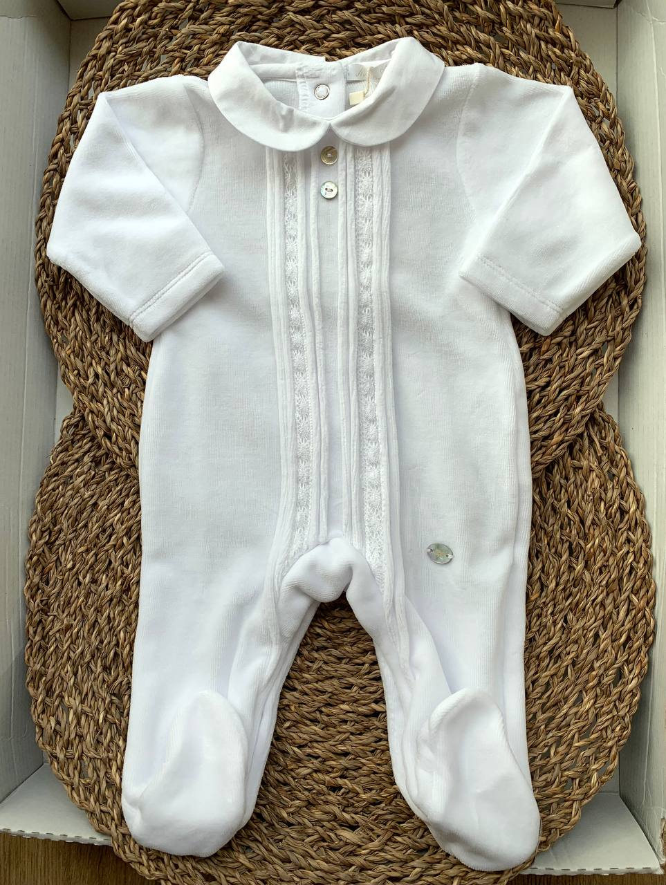 Questa tutina da neonato in ciniglia bianca è arricchita con ricami MARTINARANDA, rendendola elegante ed unica. Realizzata con materiali di alta qualità , offre calore e morbidezza per il tuo bambino. Un capo perfetto per ogni occasione speciale.