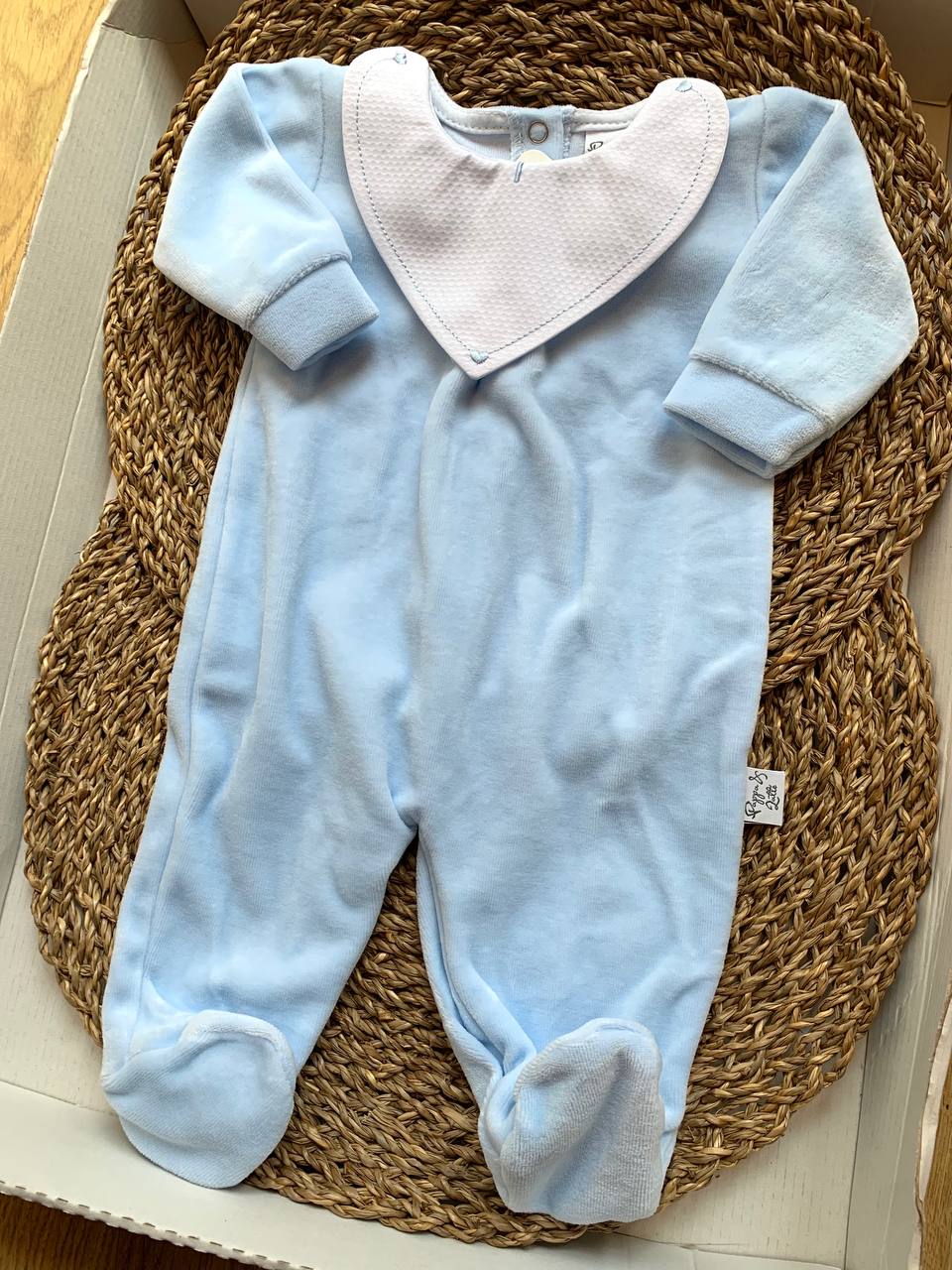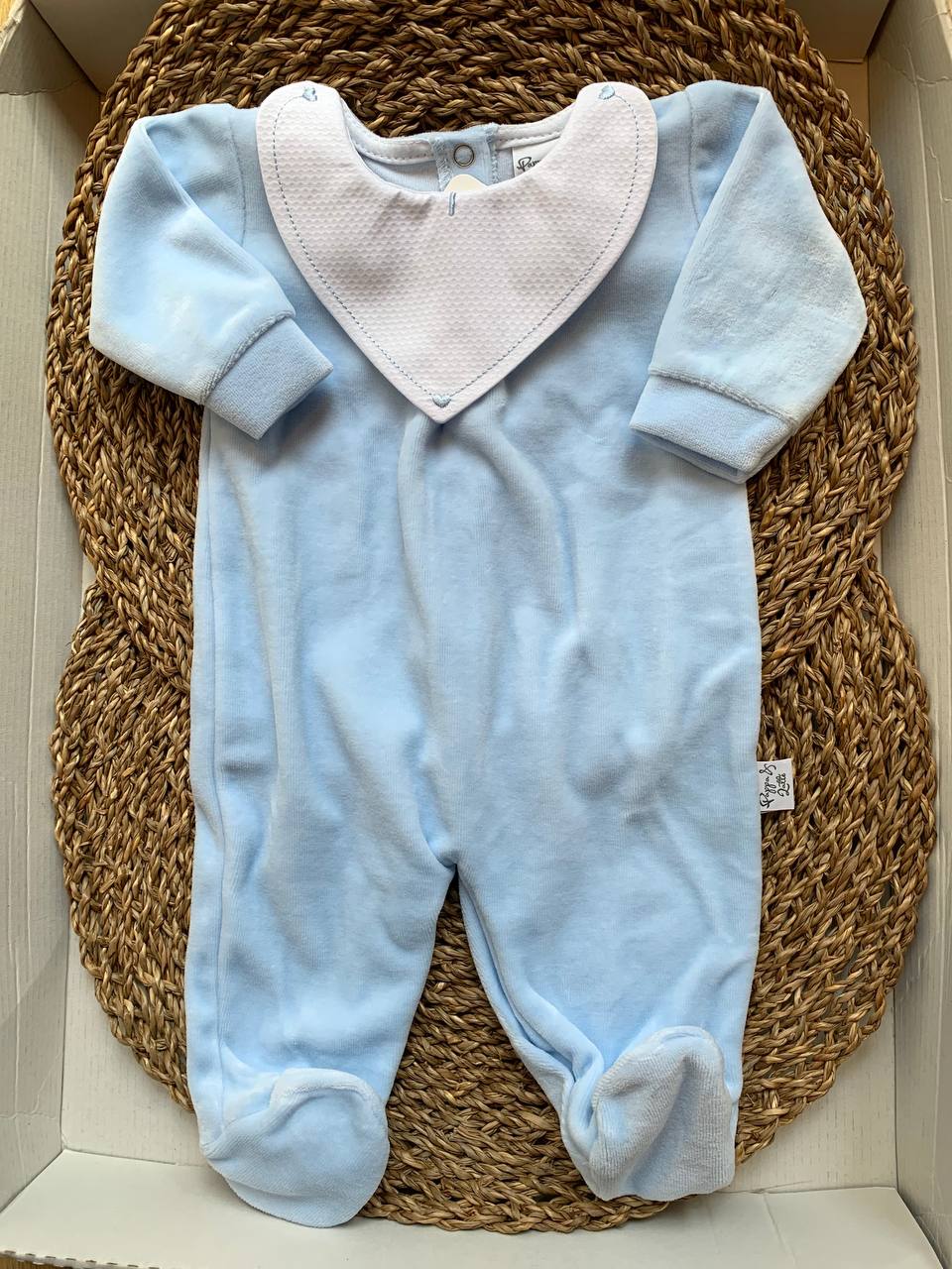 Questa tutina in morbida ciniglia è perfetta per il tuo neonato. Il color cielo e il tenero cuore trasmettono dolcezza e protezione, PAPPA & LATTE evoca l'idea comfort. Ideale per regali di nascita o per coccolare il tuo piccolo tesoro.