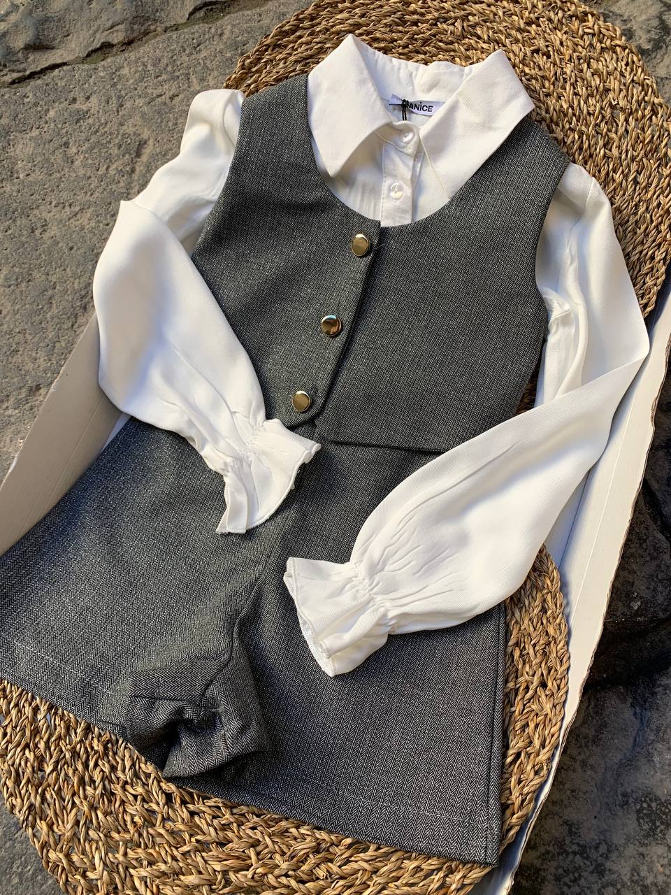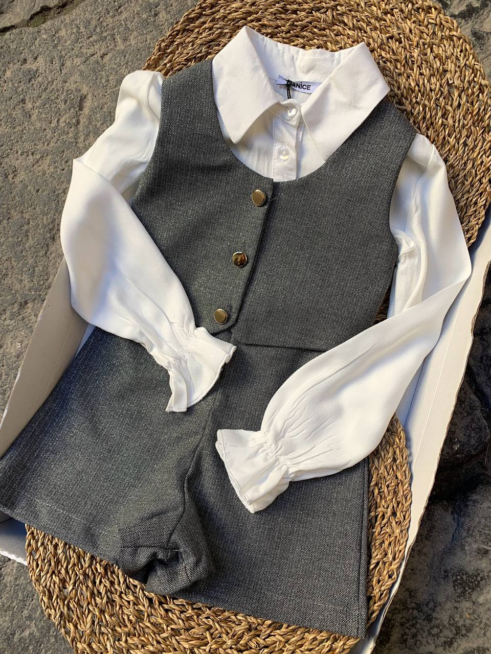 La TUTINA GRIGIA JANICE è l'abito perfetto per la tua bambina. Realizzata con tessuti di qualità, questa tuta intera elegante è ideale per ogni occasione. Con il suo design grigio e la comodità garantita, la TUTINA GRIGIA JANICE è la scelta perfetta per far splendere la tua bambina in ogni situazione.