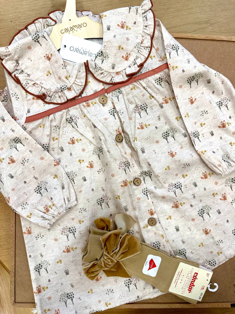 Questo vestitino Calamaro è perfetto per le piccole ragazze alla moda. Con il suo design carino e colorato, le permetterà di esprimere la sua personalità divertente e allegra. Realizzato con materiali di alta qualità , questo vestitino garantirà comfort e durata. Aggiungi un tocco di stile alla sua guardaroba con il vestitino Calamaro.